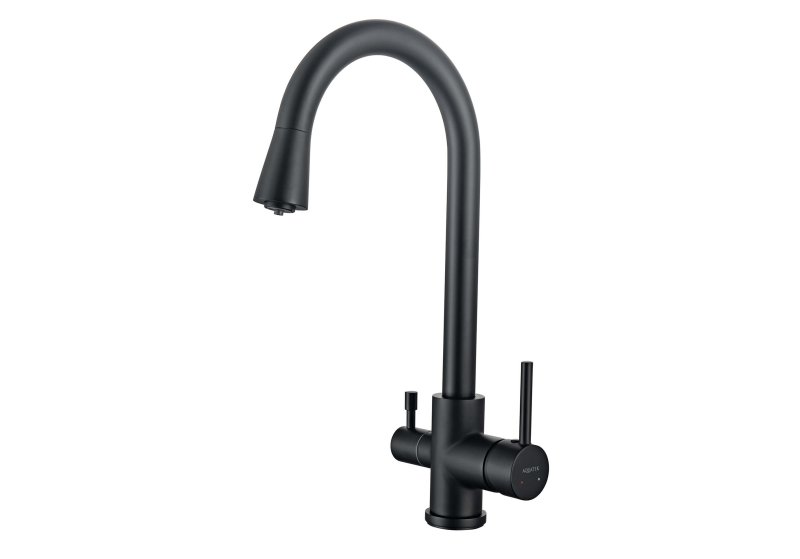 Смеситель для кухни с подключением к фильтру воды AQUATEK (полукруглый излив), матовый черный AQ1085MB