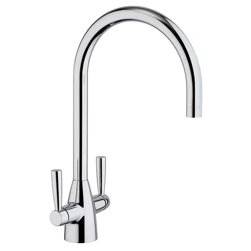 Высокий корпус и необычная форма рычагов делает дизайн двухвентильного смесителя для кухни CUCINA актуальным на долгие годы.
