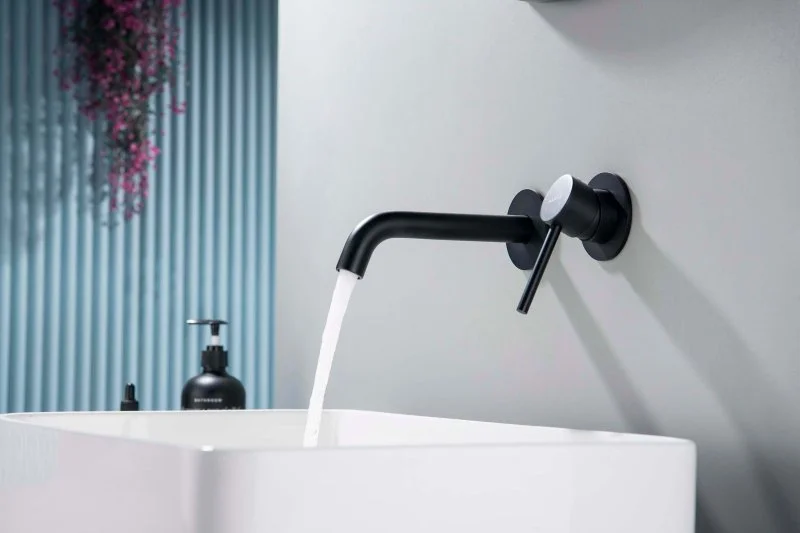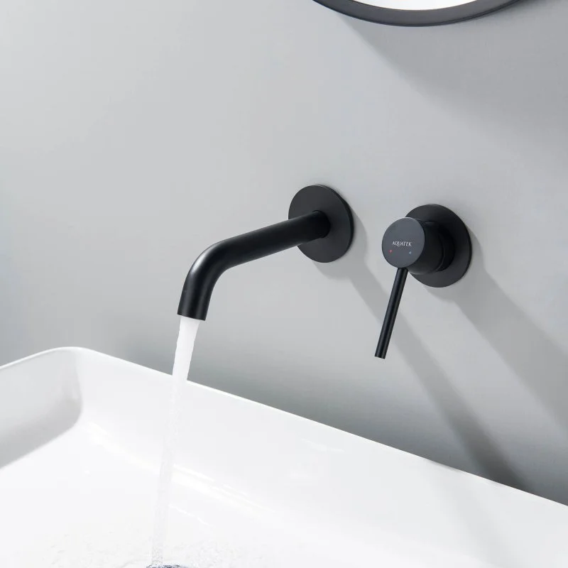 Смеситель для раковины настенный 2 отв. (внешняя и скрытая часть) AQUATEK, матовый черный AQ1313MB ЕВРОПА