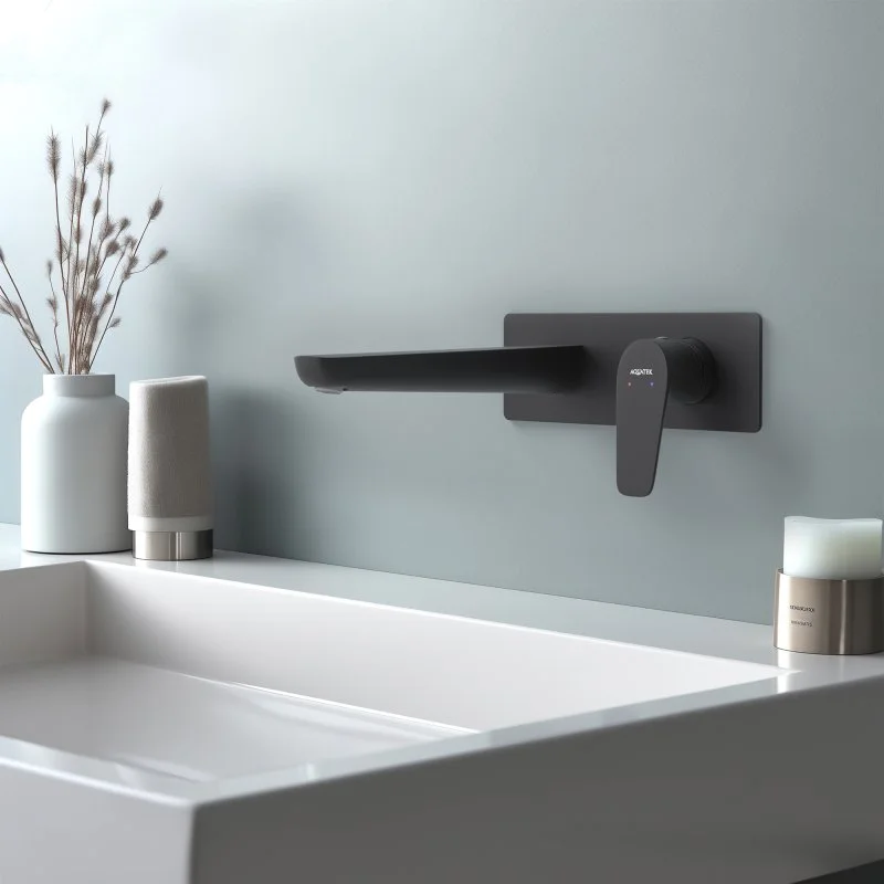 В комплекте | 1. Смеситель (внешняя и скрытая часть) 2. Декоративная накладка на стену из нержавеющей стали 3 мм 3. Излив смесителя |