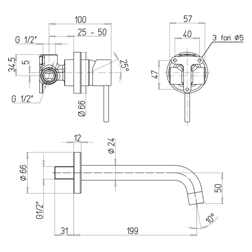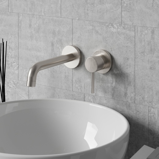 Длина излива составляет 19 см, что обеспечивает удобство при пользовании раковиной любой глубины и позволяет свободно наполнять емкости разного объема. Настенный встраиваемый монтаж скрывает все соединения и трубы под отделкой стен, оставляя на виду только рычаг управления и излив, что значительно экономит пространство и придает минималистичный аккуратный вид.