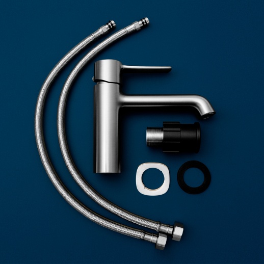 Встраиваемый смеситель для раковины в ванной или кухне с современным/минималистичным дизайном; подходит для стандартных раковин шириной 50–60 см. Идеален для создания цельного ансамбля с моделями Evolution для ванны или душа; матовая сталь вписывается в индустриальный, лофт или хай-тек стиль с текстурой и рельефностью.