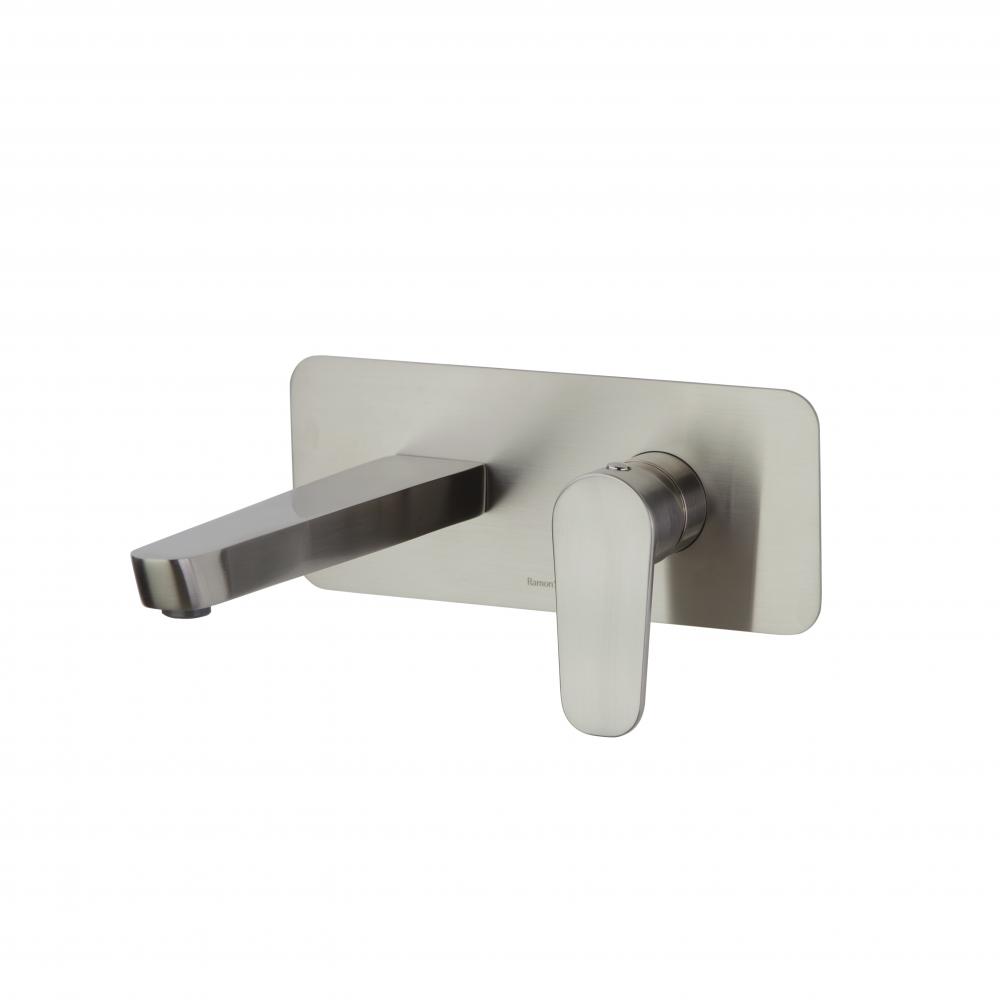 Встраиваемый однорычажный смеситель для раковины на цельной пластине с длинным изливом 240 мм ALEXIA 3620NC никель брашированный