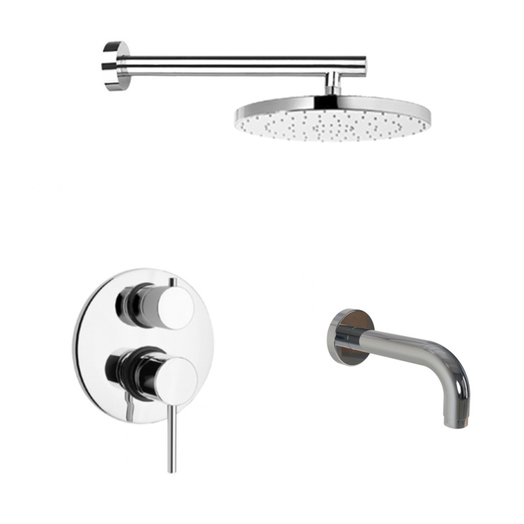 ⦁ В комплект входит смеситель, позволяющий одновременно подключить ванну и верхний душ — переключение между режимами осуществляется с помощью удобного рычага или переключателя.