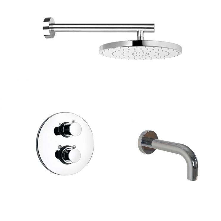 Смеситель с термостатом, излив, кронштейн для верхнего душа, верхний душ