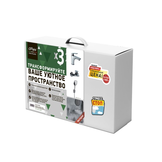 ⦁ Комплектация: Смеситель для раковины, смеситель для ванны, ручной душ с лейкой и держателем, шланг 150 см, гибкие подводки, монтажные элементы; гарантия 5 лет (срок службы 10+ лет); производство Италия.