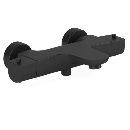 Настенный термостатический смеситель для ванны из латуни с чёрным матовым покрытием (порошковая окраска с эпоксидными смолами для устойчивости к царапинам и коррозии), фиксированный излив (длина 176 мм); двухрычажное управление (температура + поток) с керамическим картриджем Nuovo Galatron, аэратор Neoperl для экономии воды (расход ~10 л/мин), дивертор для переключения на душ, температура по умолчанию 38°C с ограничением до 43°C для безопасности. Ширина 209 мм, высота 133 мм, глубина 171 мм, вес 2,9 кг, жёсткая подводка G 1/2" (15x21), выдерживает давление до 10 бар, соответствует нормам EN1982. Производство Paini (Италия), артикул 09YO111TH, гарантия 5 лет; сертификация CE, матовая поверхность для современного стиля.