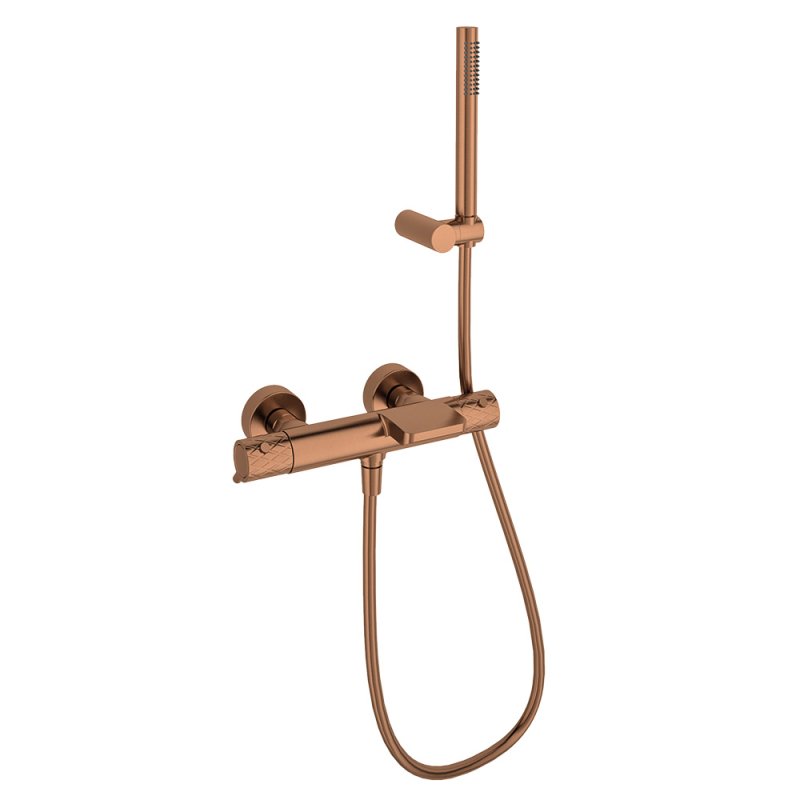Термостатический смеситель для ванны наружнего монтажа с каскадным изливом и душевым комплектом ODISEA JOYA 593901DCUC медь
