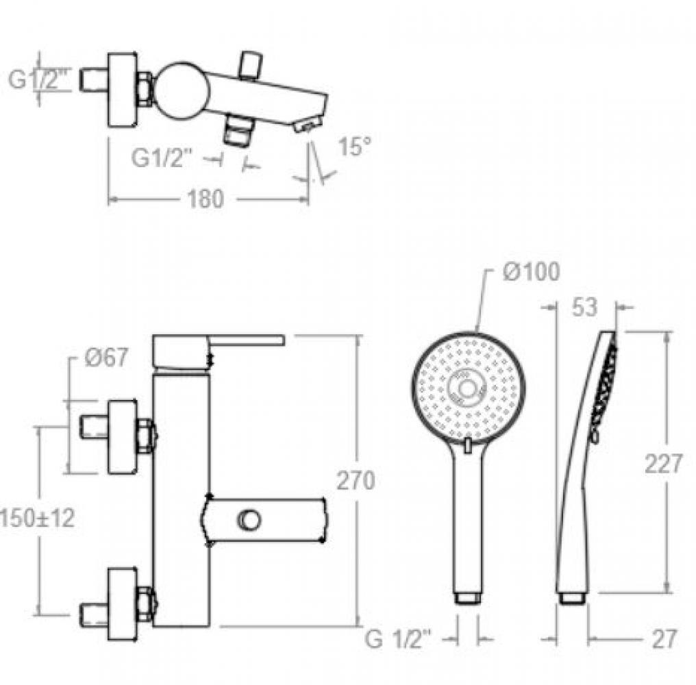 Смеситель для ванны наружнего монтажа однорычажный с душевым коплектом DRAKO 3305T3