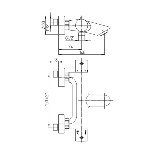 Устройство предусматривает вертикальный настенный монтаж и комплектуется фиксированным изливом длиной 148 мм с традиционной формой струи. Для дополнительного комфорта предусмотрен рычажный дивертор, позволяющий легко переключаться между режимами подачи воды. Смеситель оптимизирован для эффективного расхода воды и оснащён аэратором Neoperl, который насыщает поток воздухом, уменьшая разбрызгивание и способствуя экономии ресурса при использовании.