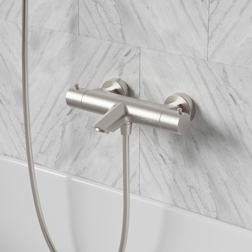 Данный смеситель оснащён встроенным термостатом, который обеспечивает стабильную и безопасную температуру воды, предотвращая резкие перепады и ожоги, что особенно важно для семей с детьми и пожилыми людьми. Механизм управления построен на керамическом картридже Nuovo Galatron из Италии, гарантирующем плавную работу и надёжность эксплуатации.