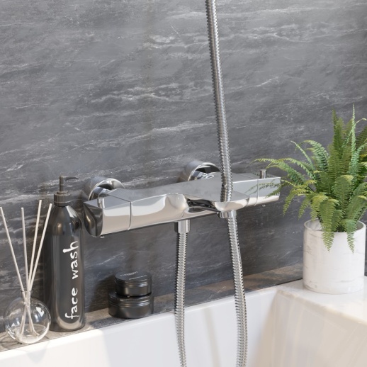 Смеситель обеспечивает стабильную температуру воды в ванной для домашних или коммерческих пространств (квартиры, отели), предотвращая ожоги и брызги, продлевая срок до 10 лет в условиях влажности; хром устойчиво к царапинам и налёту, добавляя элегантный вид. Для сантехников — простая установка экономит время (15–20 мин), окупаемость за счет итальянского качества; идеален для скандинавских интерьеров без перепадов давления.