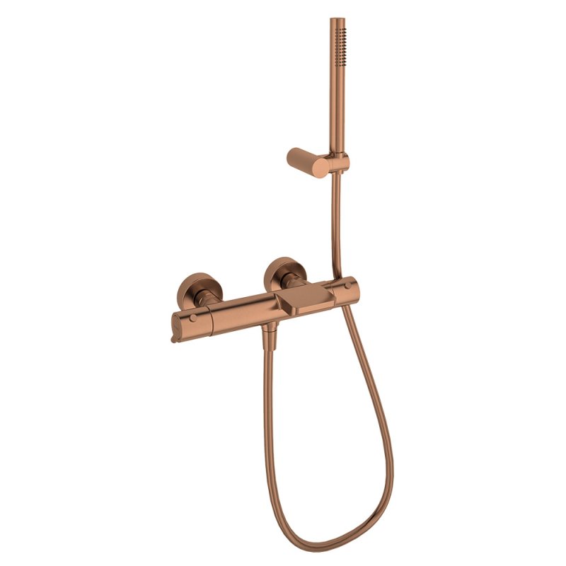 Термостатический смеситель для ванны наружнего монтажа с каскадным изливом и душевым комплектом ODISEA 393901DCUC медь