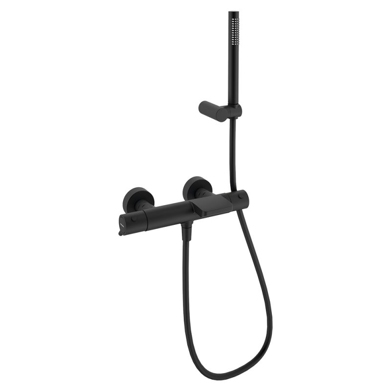 Термостатический смеситель для ванны наружнего монтажа с каскадным изливом и душевым комплектом ODISEA 393901DNM Черный