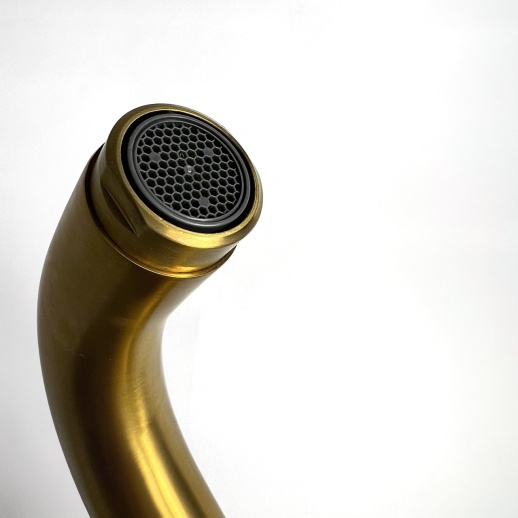 Корпус излива изготовлен из прочного латунного сплава, обеспечивающего надежность и устойчивость к коррозии. Финишное покрытие PVD (Physical Vapor Deposition) обладает исключительной стойкостью к истиранию, химическим воздействиям и выцветанию, сохраняя яркость и блеск даже при интенсивной эксплуатации и высокой влажности. Брашированная текстура поверхности добавляет матовости и уменьшает видимость пятен и разводов, что значительно облегчает уход и поддержание идеальной чистоты.