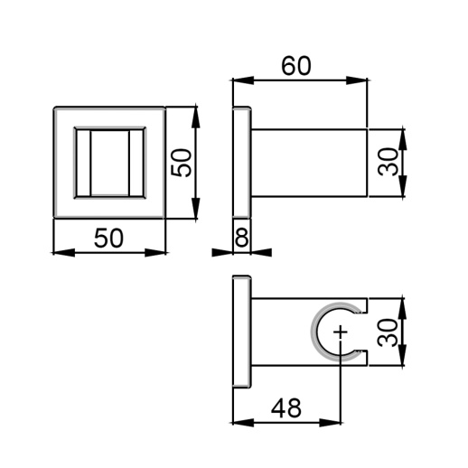 Фиксированный настенный держатель квадратной формы (сторона ~50 мм) из латуни с хромированным покрытием (CR), предназначен для крепления ручной душевой лейки; выдерживает вес до 2 кг, монтаж на стену с помощью анкерных болтов. Вес 0,2 кг, размеры упаковки 90x60x70 мм; соответствует нормам EN1982 для контакта с водой. Производство Paini (Италия), артикул 53CR186QQ, гарантия 2 года; сертификация CE для ванных комнат.
