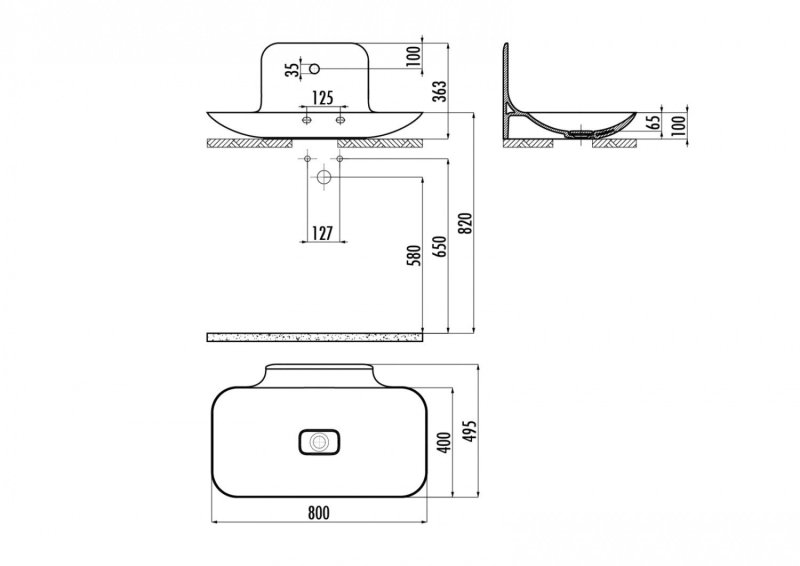Creavit Foglia FG080-00CB00E-0000 Раковина накладная 800*495 мм (белый глянцевый)