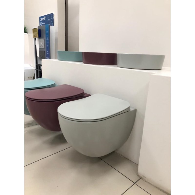 Подвесной безободковый унитаз Creavit Free в холодно-сером матовом цвете — современный и практичный выбор для стильной ванной комнаты. Выполнен из прочного экологичного фарфора с антигрязевым, антибактериальным и водоотталкивающим покрытием с ионами серебра, которые уничтожают до 99,9% микробов, обеспечивая максимальную гигиену. Благодаря технологии кругового смыва вся поверхность чаши очищается одним нажатием, без пропусков.