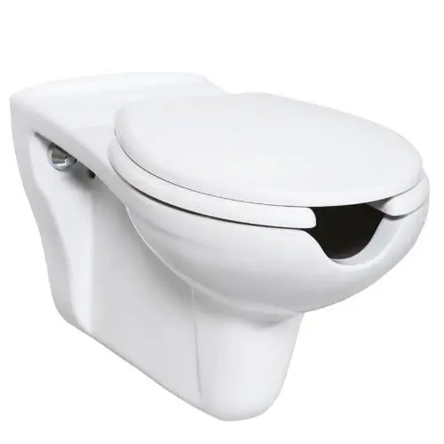 Подвесной унитаз для людей с ограниченными возможностями изготовлен из экологичного высокопрочного материала - санфарфора.
