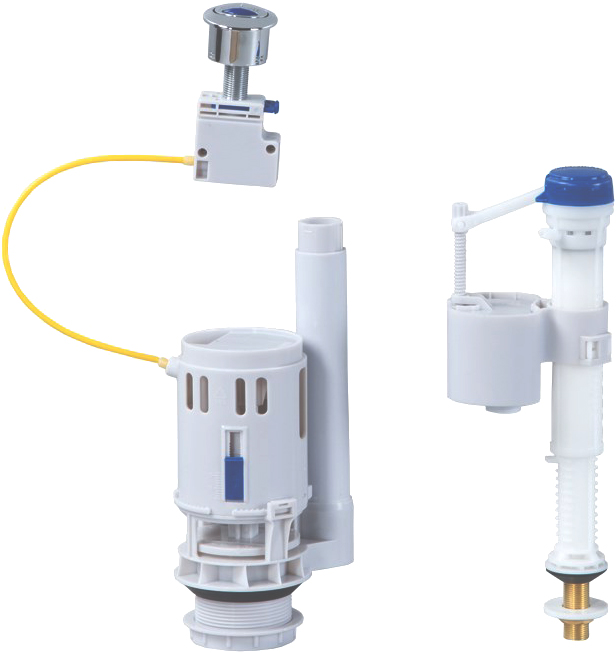 Пневматический механизм наполнения с нижней подводкой воды (крепления для подводки - латунь). Есть экономичный слив. Регулировка слива воды для полного и экомичного режима.