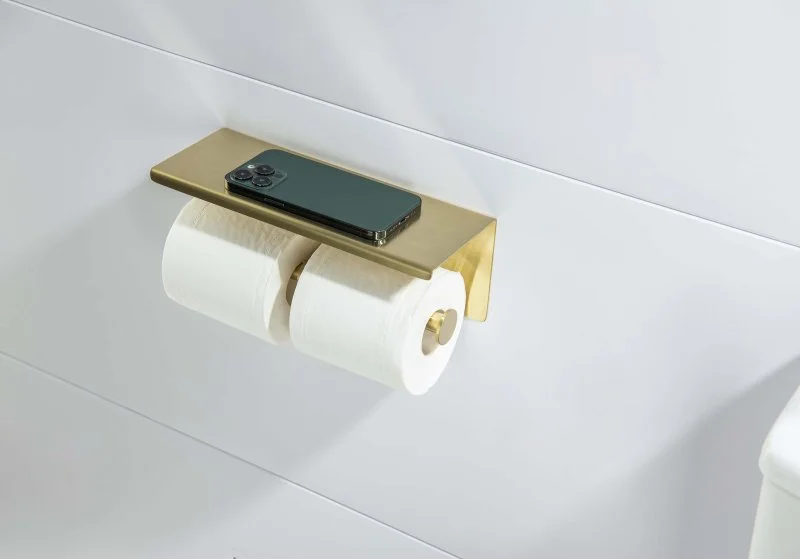 AQ4909BG ОБЕРОН бумагодержатель двойной с полкой, шлиф. золото