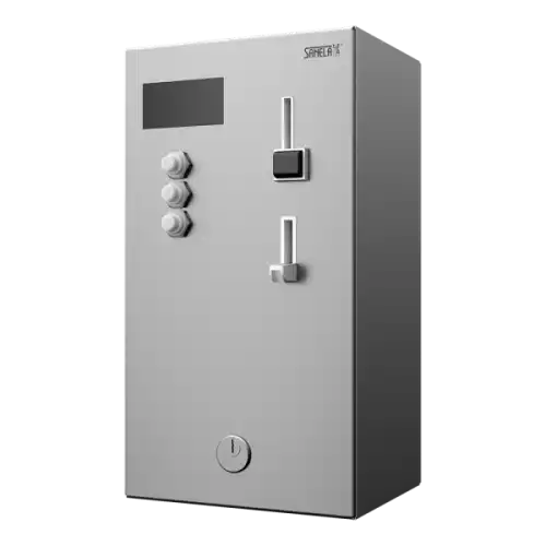 -Гигиенический смыв; -Антивандальное исполнение; -Выбор душа автоматом-после того, как монета или жетон были использованы, автомат выбирает душ пользователю; -Интерактивное управление-после того, как монета или жетон были использованы, автомат запускает воду в течении нескольких секунд, чтобы указать выбранный душ, пользователь может выключать и включать воду пьезо кнопкой прямо в душе; -За 30 сек. перед окончанием подачи воды пользователь предупреждается прерывистой подачей воды; -Настройка параметров при помощи пульта дистанционного управления SLD 05 (настройка времени пуска душа в соответствии с величиной монеты или жетона, настройка срока задержки включения, настройка стоимости времени, актуальный курс EUR, настройка стоимости жетона, настройка контраста дисплея, возможность выключения одного из душей); -Возможность маркировки символов на кнопки по запросу; -Возможность получения статистической информации, диагностика устройства; -Закрывается на ключ; -Материал AISI-304; -Возможно производить из AISI-316L по запросу; -Матовая поверхность.