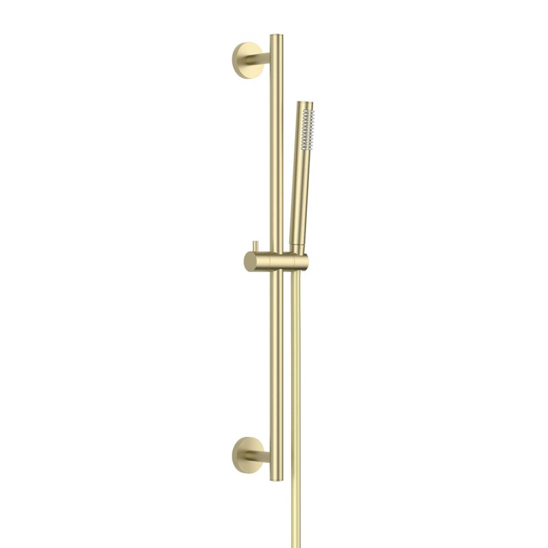 Душевой гарнитур AQ2012BG ЕВРОПА 1jet 65 см, шлифованное золото Технические характеристики ⦁ Комплектация: душевая стойка 65 см, ручная лейка с одним режимом, гибкий шланг 1,5 м ⦁ Материал: латунь (стойка и держатель), ABS-пластик с покрытием (лейка), армированный шланг ⦁ Покрытие: шлифованное золото, устойчивое к царапинам и коррозии ⦁ Монтаж: настенный, стандартное подключение G1/2 ⦁ Количество режимов: 1 (равномерная струя) ⦁ Регулировка высоты и положения лейки по стойке ⦁ Страна производства: Китай Совместимость ⦁ Подходит для большинства смесителей с универсальным подключением ⦁ Совместим с типовыми сантехническими аксессуарами ⦁ Легко интегрируется в существующие душевые зоны без доработки коммуникаций Преимущества ⦁ Корпус из латуни гарантирует надежность и длительный срок службы ⦁ Шлифованное золотое покрытие придает стойкий декоративный эффект и защищает от потускнения ⦁ Простая регулировка высоты и угла наклона лейки для индивидуального комфорта ⦁ Лейка с антикальциевым покрытием облегчает очистку от известкового налета ⦁ Быстрый монтаж без специального инструмента Особенности установки ⦁ Комплектуется всеми необходимыми креплениями ⦁ Стандартная длина стойки оптимальна для небольших и средних ванных комнат ⦁ Возможность установки как в новых, так и в реконструируемых санузлах Область применения ⦁ Рекомендуется для жилых и коммерческих объектов: квартиры, гостиницы, апартаменты, офисные санузлы ⦁ Оптимален для дизайнерских интерьеров с акцентом на премиальные отделки ⦁ Подходит для капитального ремонта и замены устаревших душевых систем
