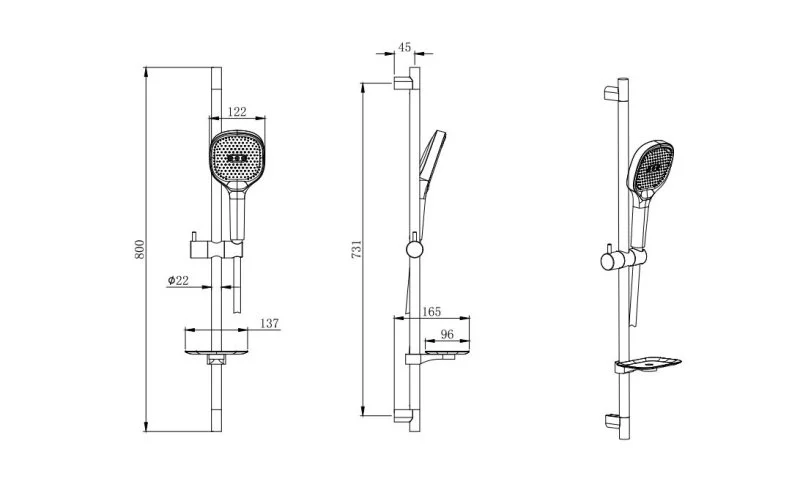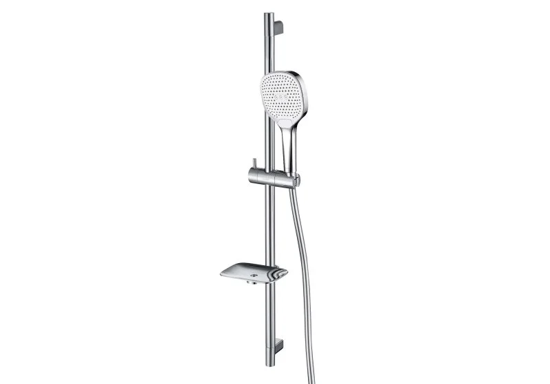 В комплекте | 1. Душевая штанга 2. Держатель душевой лейки 3. Душевая лейка 4. Душевой шланг из ПВХ 5. Мыльница 6. Монтажный комплект |