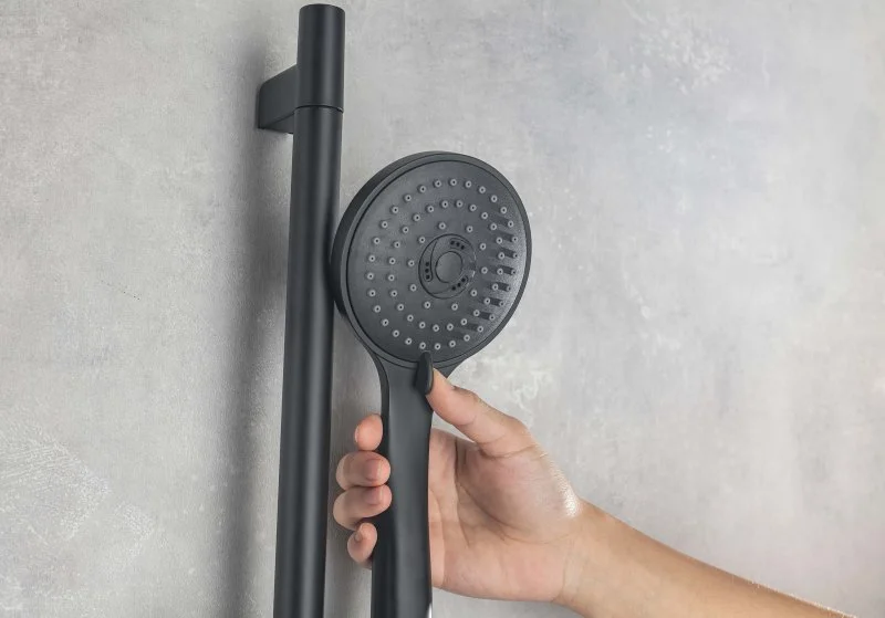 передвижной держатель лейки; 3 х режимная душевая лейка; оптимальная длинна шланга; шланг с защитой от перекручивания; высококачественные материалы; стойкое покрытие;