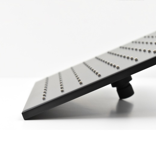 Квадратный душ обеспечивает равномерный мягкий поток воды в домашних или коммерческих ванных (отели, спа, квартиры), выдерживая давление без протечек и снижая риск коррозии благодаря латунной конструкции; матовое черное покрытие устойчиво к налету и механическим повреждениям в условиях высокой влажности, продлевая срок до 10 лет при ежедневном использовании. Для строителей — надежный монтаж экономит усилия на потолках или стенах толщиной 10–20 см, окупаемость за счет универсальности и соответствия нормам; превосходит пластиковые китайские аналоги по долговечности и эстетике, идеально для дизайнеров в проектах с акцентом на матовый черный без видимых креплений.