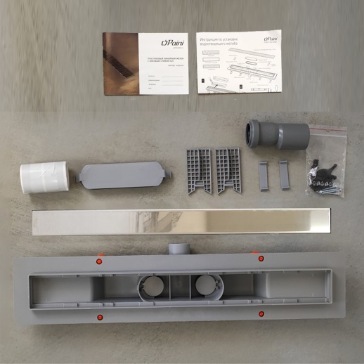 ⦁ Комплектация: Лоток с рамкой, двухсторонней решеткой, регулируемыми ножками, переходником для выпуска D50 мм, гидроизоляционной лентой, монтажным комплектом; без слива (приобретается отдельно); гарантия 25 лет (срок службы 30+ лет).