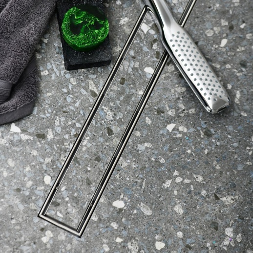 Душевой лоток для ванной с минималистичным классическим дизайном; подходит для компактных душевых зон 450 мм у стены или в центре малых санузлов в квартирах или домах, без барьера для доступности. Идеален для создания цельного ансамбля с плиткой; глянцевый хром вписывается в классику, хай-тек или модерн стиль.