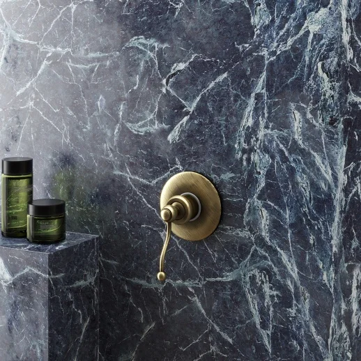 Смеситель позволяет переключать поток воды на два выхода — один для верхнего душа, второй для ручной лейки или излива, что делает его максимально функциональным. Полный комплект включает внутреннюю и внешнюю части для удобного монтажа. Коллекция Duomo с ее антикварными формами прекрасно впишется в интерьеры в стилях классика, винтаж и фьюжн.