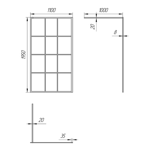 | В комплекте | Стеклянная панель, пристенный алюминиевый профиль, кронштейн, уплотнители |