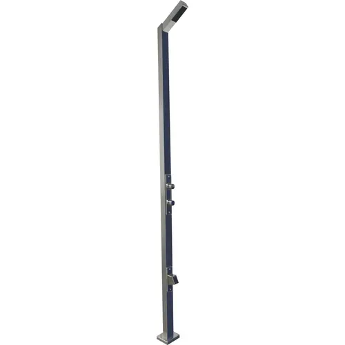 Душевая стойка с одной душевой лейкой, одним ножным умывальником и двумя кнопками с таймером.Напольная модель. Открывание кнопкой. Прочная конструкция из нержавеющей стали с полированной отделкой. Поставляется с крепежными элементами. Подключение к водопроводу: 1/2" BSP с внутренней резьбой.