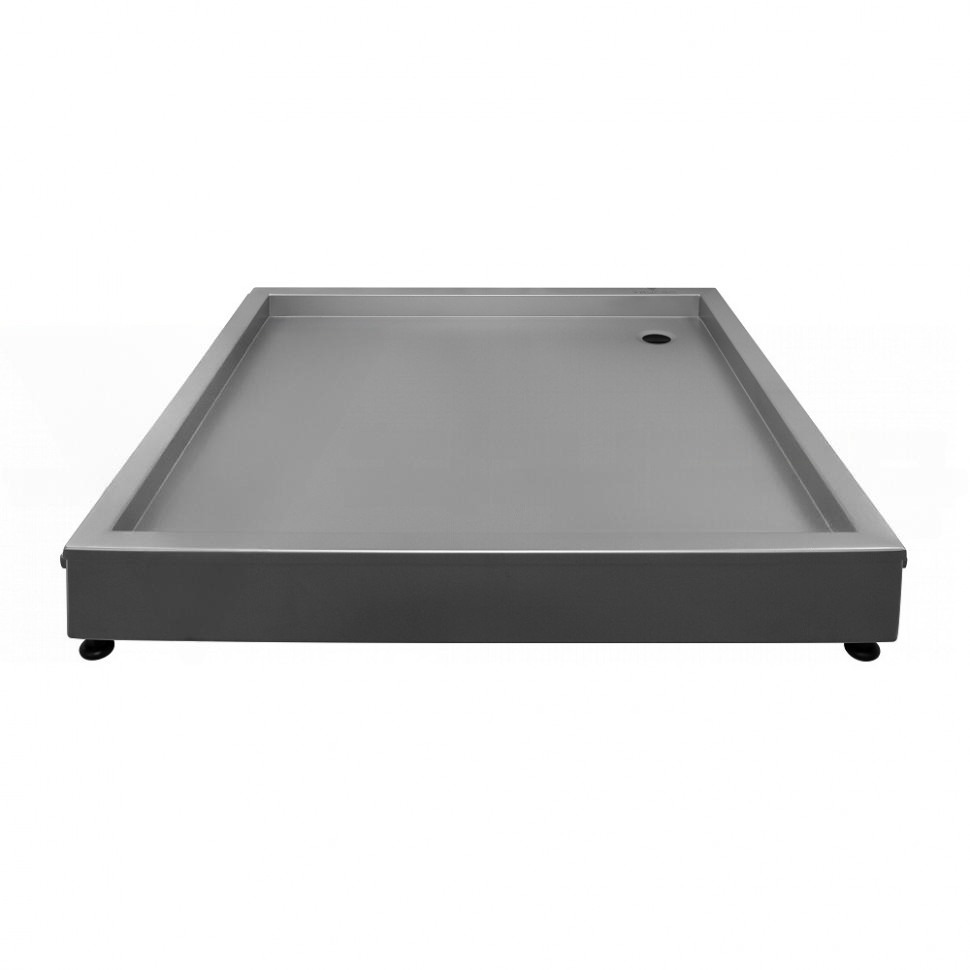 Данный поддон предназначен для использования в душевых кабинах. Он изготовлен из качественной нержавеющей стали AISI 304, толщина которой составляет 1,5 мм. Размеры поддона равны 100х100х14 см.