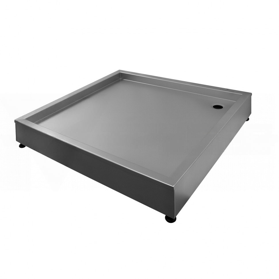 Этот поддон предназначен для установки в душевую кабинку. Он выполнен из высококачественной нержавеющей стали марки AISI 304 толщиной 1,5 мм. Размеры поддона составляют 90х90х5 см.