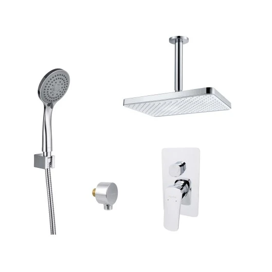 Душевая система Aquatek ВЕГА AQ1073CR Set 4 в 1, хром Комплект включает в себя смеситель скрытого монтажа на 2 потребителя с керамическим картриджем 35 мм, потолочный верхний душ размером 305×205 мм из ABS-пластика с защитой от известкового налёта, ручную лейку диаметром 10 см с 3 режимами струи и душевой шланг длиной 1600 мм с подключением. Монтаж настенный, стандарт подводки 1/2", управление рычажное, корпус из латуни с хромированным покрытием для долговечности и простоты ухода. Преимущества: современный дизайн, встраиваемый монтаж для экономии пространства, надежность материалов и функциональность — оптимальный выбор для жилых и коммерческих объектов, где важны качество и удобство эксплуатации.