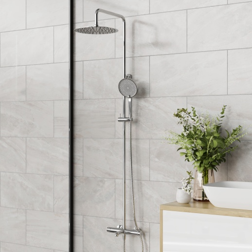 Система обеспечивает удобный душ с регулировкой высоты в домашних или коммерческих ванных (квартиры, отели), равномерным потоком и долговечностью до 15 лет в условиях влажности; хром устойчиво к царапинам и химии, добавляя элегантный вид. Для сантехников — простая установка экономит время (15–20 мин), окупаемость за счет итальянского качества; идеальна для классических интерьеров без сложных функций.
