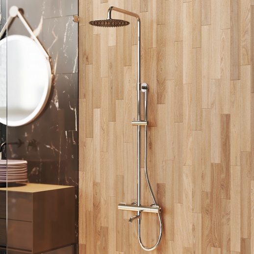 ⦁ Комплект включает смеситель с полноценным функционалом переключения между верхним душем и ручной лейкой, что делает систему универсальной и удобной.