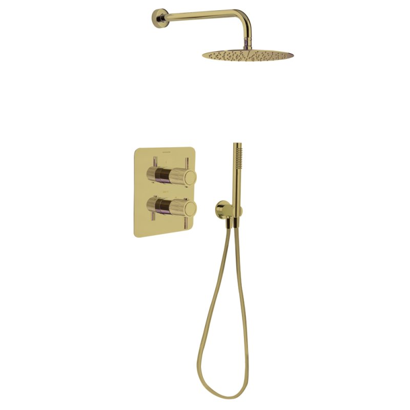Встраиваемая термостатическая душевая система с тропическим душем и душевым комплектом ODISEA JOYA K5987021OC золото брашированное