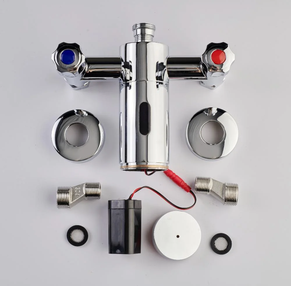Смеситель предназначен для наружного монтажа и оснащен лейкой на выдвижной телескопической стойке. Устройство оборудовано инфракрасным датчиком движения, который автоматически включает воду, когда пользователь оказывается в зоне действия, и прекращает подачу воды после того, как он покидает эту зону. Комплект поставки включает смеситель и лейку, дополнительных элементов не требуется.