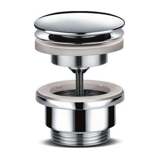 Комплект: латунный клапан с хромом, уплотнители и инструкция по установке; подходит для раковин с/без перелива (круглые, овальные, стандартные размеры), интегрируется с системами Paini и европейскими аналогами (Villeroy & Boch, Grohe). Устанавливается в сливное отверстие без специальных инструментов; хромированное покрытие устойчиво к коррозии. Отличается от поплавковых моделей (типа 53CR945) клик-клак механизмом для удобства, превосходя пластиковые китайские варианты по прочности и долговечности.
