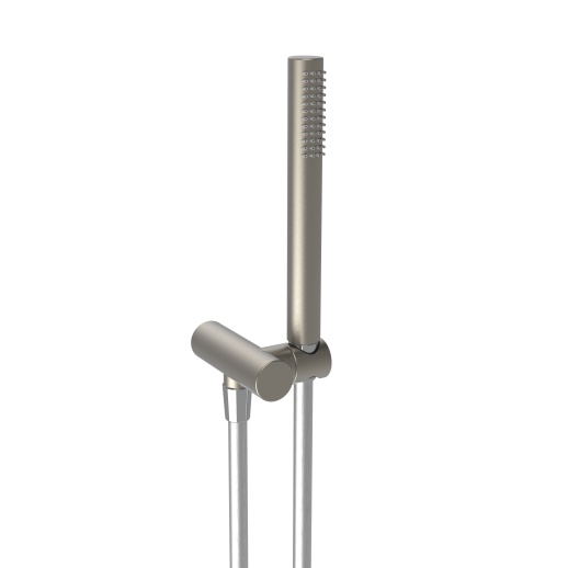 Комплект: лейка, металлический шланг, держатель для лейки с выводом воды и крепеж; подходит для встраиваемых смесителей Paini серии Grazia и европейских аналогов (Hansgrohe, Grohe, Villeroy & Boch). Интегрируется в душевые системы для ванны или душа, без фильтра; латунный корпус обеспечивает антикоррозийную стойкость без пайки. Отличается от хромированных моделей (типа 53CR440TT) матовым никелевым покрытием для минималистичного стиля, превосходя пластиковые китайские варианты по прочности.