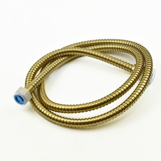 Комплект: шланг с гайка-гайка соединениями, без дополнительных уплотнителей; предназначен для ручных леек и душевых систем Paini и европейских аналогов (Hansgrohe, Grohe, Villeroy & Boch). Интегрируется в стандартные душевые стойки или смесители, заменяя изношенные шланги; металлическая оплетка обеспечивает прочность без пайки. Отличается от пластиковых моделей (типа PVC) повышенной стойкостью к износу и эстетикой золота, превосходя китайские аналоги по долговечности.