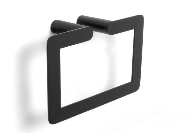 Держатель для полотенец прямоугольный выполнен из нержавеющей стали, с покрытием чёрной матовой краской. В комплект входят все необходимые крепежные элементы.