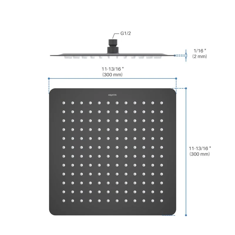 Квадратный верхний душ 300*300*2 мм AQUATEK, матовый черный AQ2074MB
