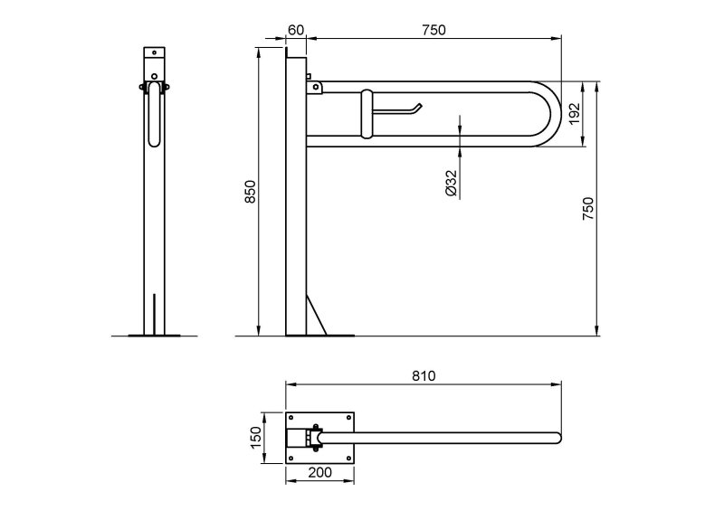 Полукруглый поручень для людей с ограниченными возможностями с креплением к полу Nofer 15064.B