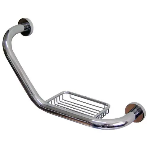 • Угловая штанга с корзиной для мыла, изготовлена из хромированной латуни, полированная, толщина 1 мм, диаметр 25 мм, с защитной толщиной никель 9,8 мкм + хром 0,40 мкм, для настенного монтажа.