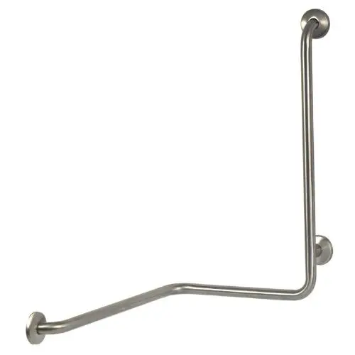 Угловой поручень на две стены с тремя точками крепления и защелкивающимися фланцевыми крышками, выполненный из нержавеющей стали, для туалетов, душевых и раздевалок.